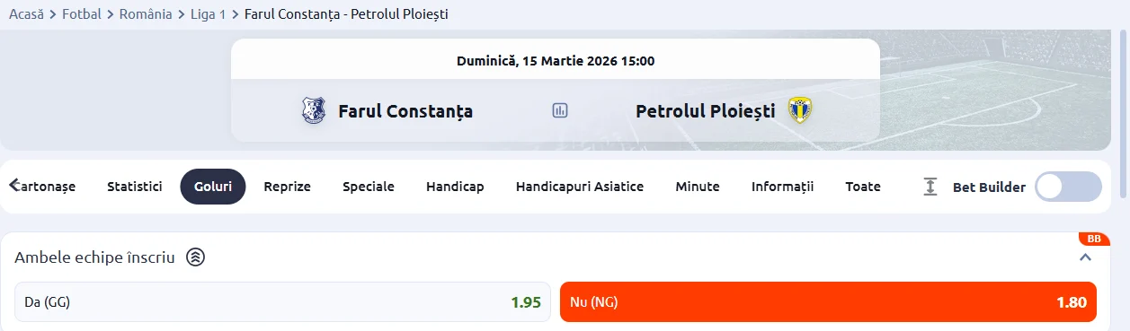 - „Ambele echipe înscriu” are două opțiuni: Da/Nu.