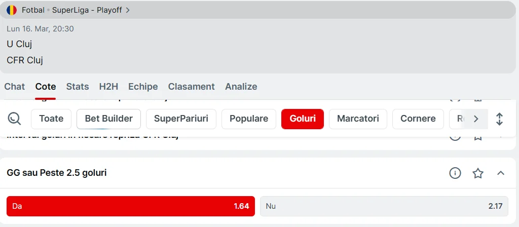 Anticipez că în derby-ul clujean se vor marca mai multe goluri. Totodată, sunt șanse bune ca ambele echipe să înscrie, având în vedere forma foarte bună prin care trec.